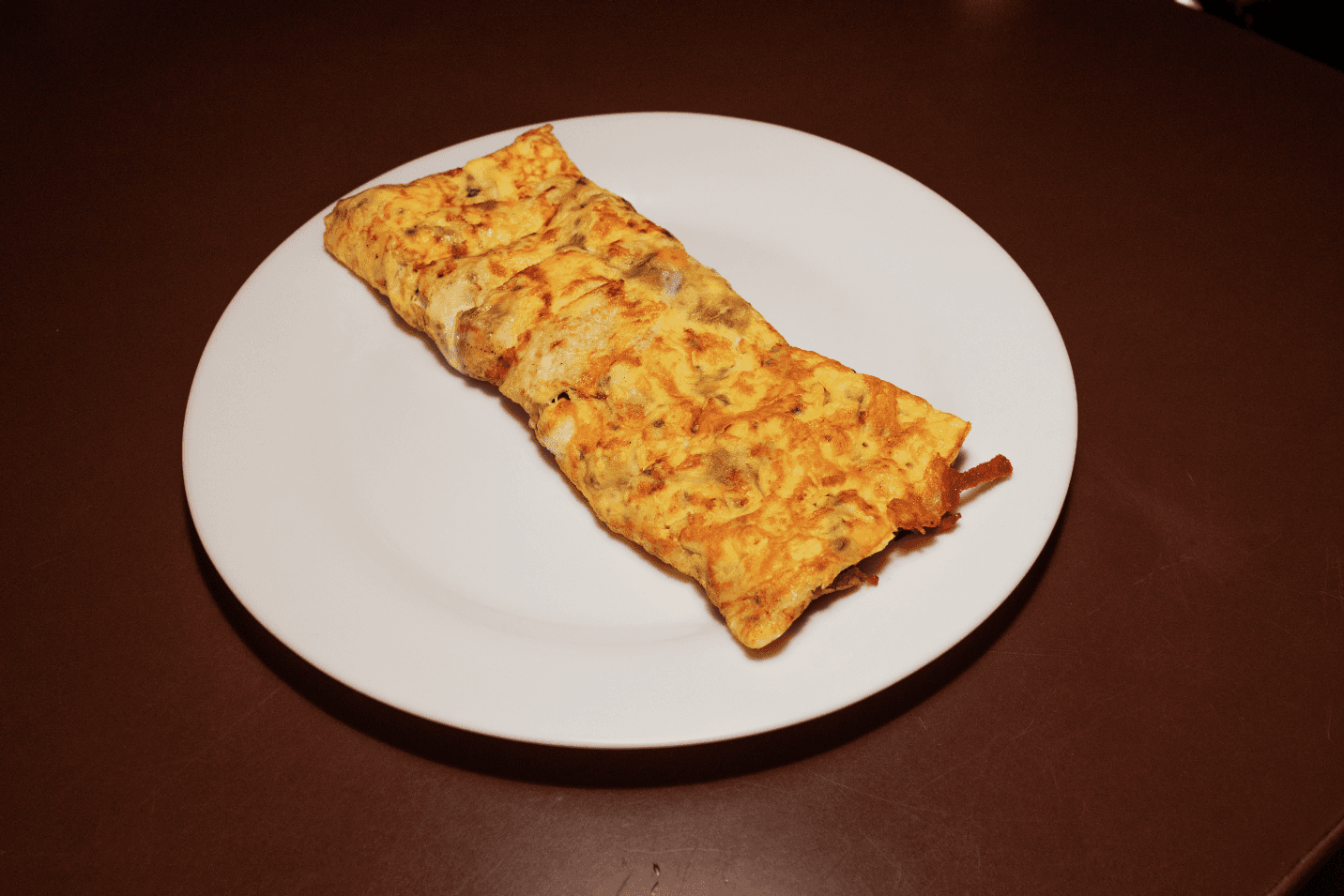 Ovo, bacon, calabresa, frango, queijo, milho, tomate, cebola e orégano.